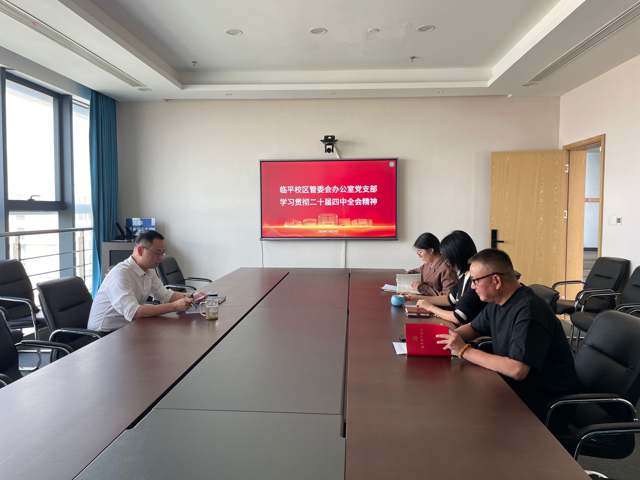 深学细悟筑牢思想根基,实干笃行赋能校区发展。10月29日下午,临平校区管委会办公室党支部在图书馆844会议室举行主题党日活动,深入学习领会党的二十届四中全会精神,并就下一步重点工作进行部署。会议由支部书记方平主持。