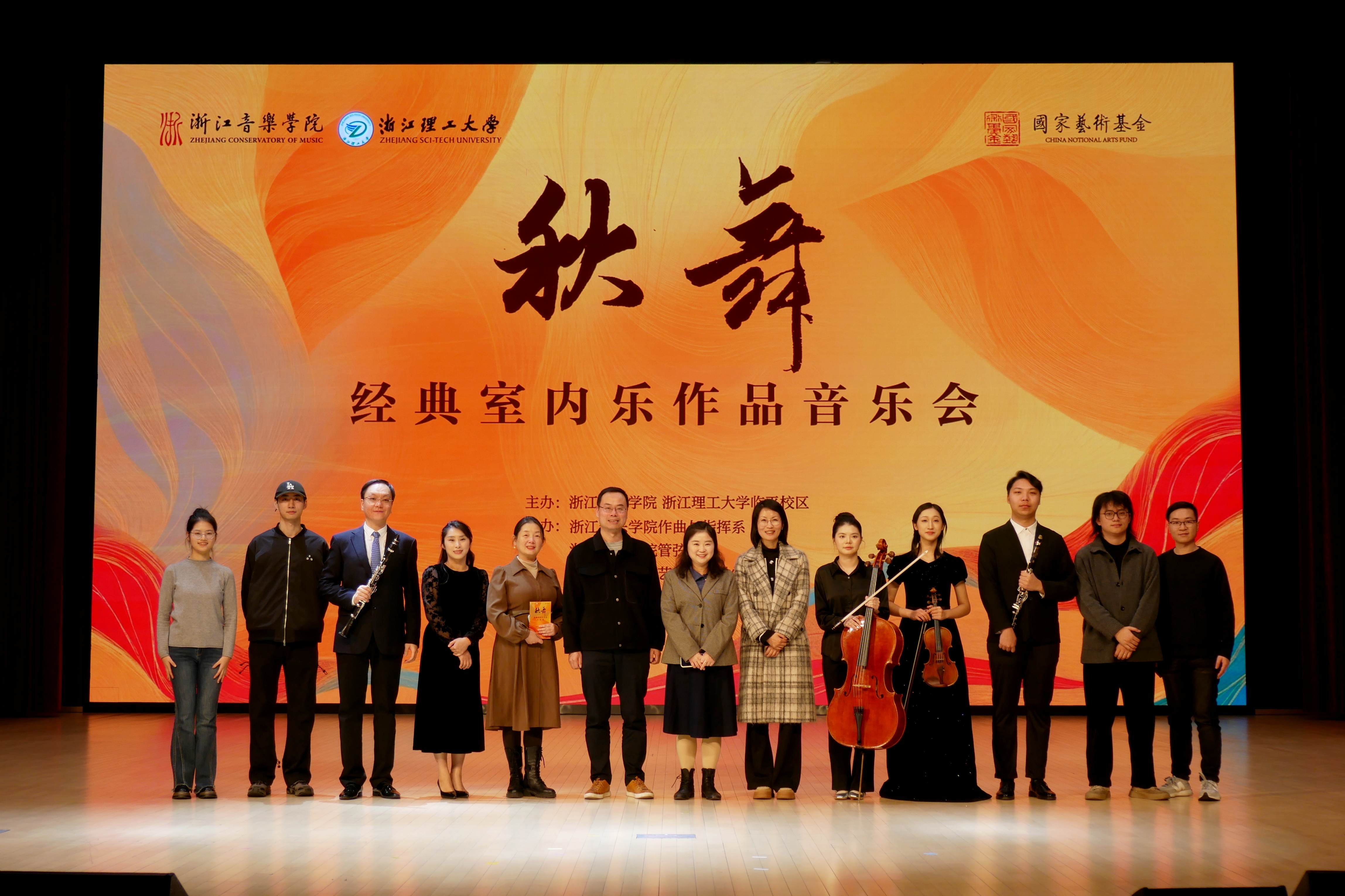 为深入贯彻落实党的二十届四中全会精神,丰富临平校区校园文化生态,激活师生艺术审美活力,11月19日晚,校区首届秋日文化季系列活动之“秋舞——经典室内乐作品音乐会”在校区小剧场精彩上演。本场音乐会由浙江音乐学院与浙江理工大学临平校区联合主办,浙江音乐学院作曲与指挥系、管弦系、艺术指导教学部及附属音乐学校共同承办,以中西合璧的艺术表达、精湛娴熟的演绎水准,为现场观众带来一场高雅艺术盛宴。