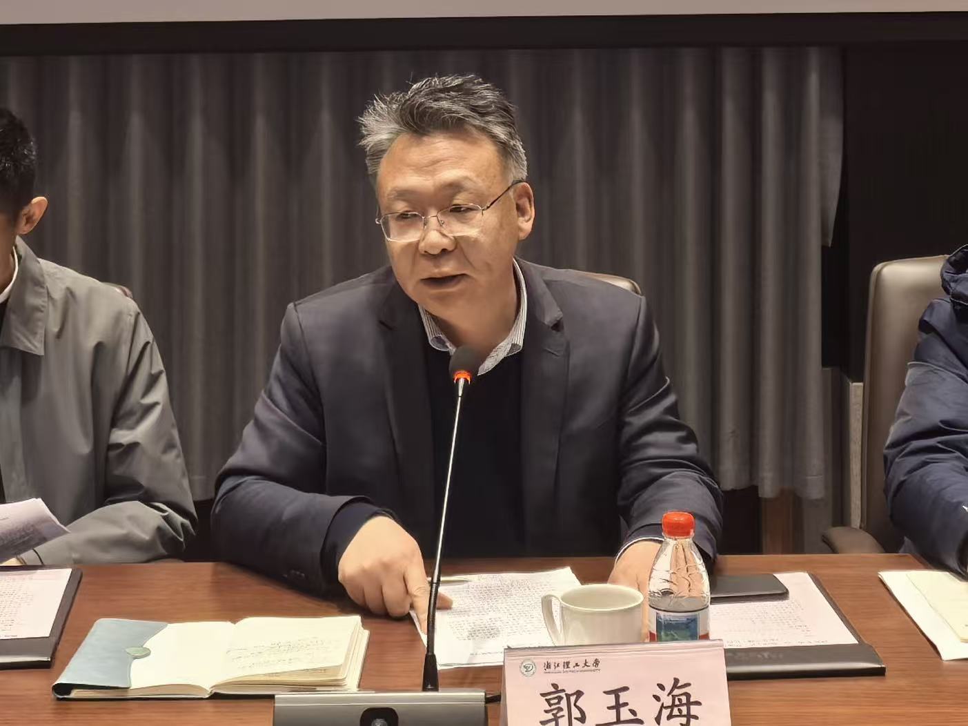 3月17日上午,2026年第一次“临理工作”联席会(统筹发展与安全专题)在临平校区蚕学馆二楼会议室召开。浙江理工大学副校长郭玉海,临平区委政法委副书记俞岗、区发改局副局长何泉、临平经济技术开发区创新创业局局长计艳珏出席会议。